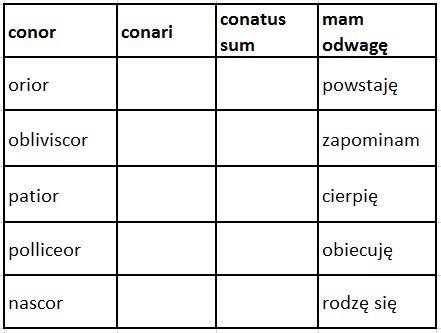 konstruować formy verba deponentia w indikatiwie praesentis, imperfecti, futuri I;