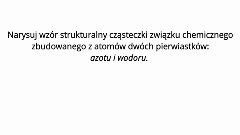 Animacja przedstawia, w jaki sposób narysować wzór strukturalny związku azotu z wodorem.