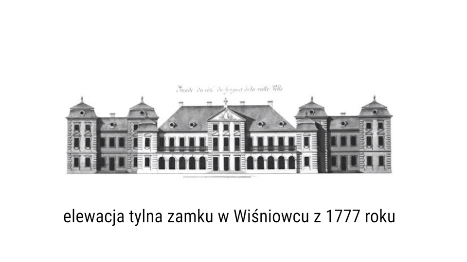 ![Slajd przedstawia założenia architektoniczne przebudowanego na palazzo in fortezza [czyt.: palaco in forteca] zamku Wiśniowieckich. Pałac jest obwarowany i ufortyfikowany. Centralna twierdza ma cztery bastiony: trzy wysunięte, a czwarty mniejszy oparty o rzekę. Wewnątrz kompleksu jest otoczony budynkami gospodarczymi prostokątny pałac o dwóch skrzydłach. Prowadzi do niego znajdująca się u dołu planu brama wjazdowa, od której po prawej stronie rozciągają się ogrody reprezentacyjne i użytkowe. Od strony zachodniej twierdza jest rozbudowana o kolejny obszar obwarowań, a od strony wschodniej ma zejście w dolinę rzeczną. Rysunkowi towarzyszy napis informacyjny: Plan Wiśniowca z XVIII wieku. Widoczny pałac wewnątrz fortyfikacji](https://static.zpe.gov.pl/portal/f/res-minimized/R1Mp3snYkYMbd/1713169617/2B7e3uOk48s5P8NPJv6lrsnG31sSWmqG.jpg)