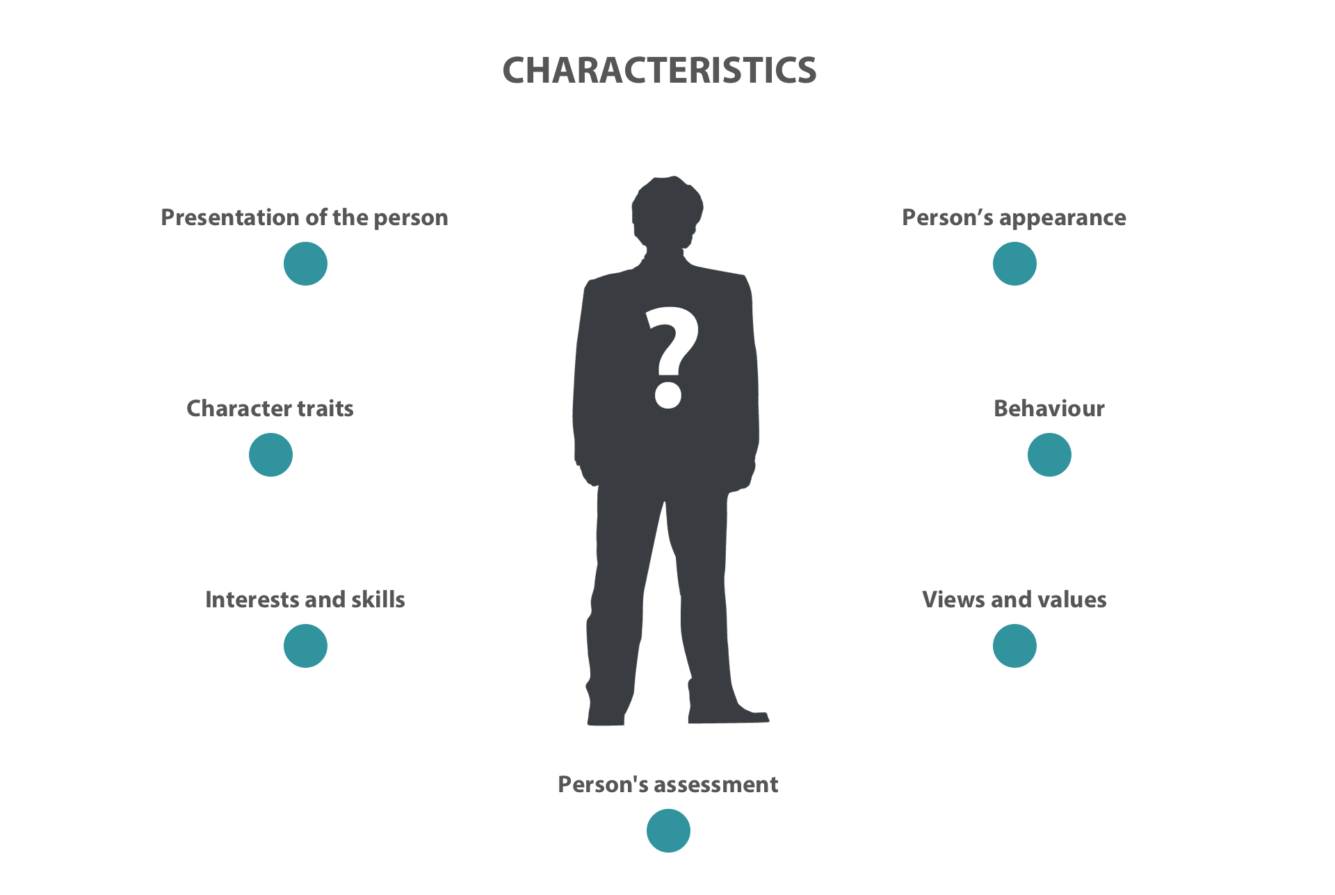 A physical description is an analysis of the appearance of a real person or a literary or fictional character. Character trait description, in turn, is a form of an oral or a written discussion of a character’s personal qualities. Such an analysis may cover character behaviour, personal and intellectual qualities, lifestyle and opinions, e.g. what positive traits does this character have? What negative character traits does he or she have? What makes this character stand out? Self‑descriptionSelf‑description, in other words an attempt to describe oneself, is a special form of character descriptioncharacter description. Character description is used in all kinds of texts: literary ones, official letters, journalists’ articles, rhetoric expressions, scientific definitions, as well as cover letters, film scripts and laudatory speeches. Depending on the author’s intention, a depiction can be serious, jocular or ironic. A full character description should include: character presentation, physical description, character trait description, description of a character’s behaviour, hobbies, skills, views and core values, and an evaluation of that character.