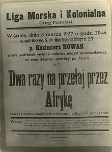 Kazimierz Nowak - polski podróżnik. Był pierwszym człowiekiem na świecie, który przebył samotnie kontynent afrykański z północy na południe