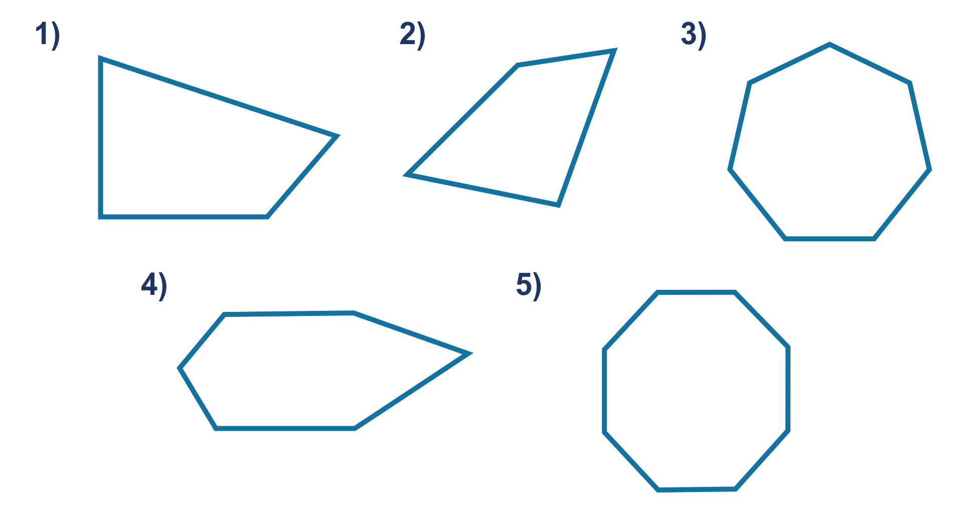 Ile boków, wierzchołków i kątów wewnętrznych ma każdy z narysowanych wielokątów?