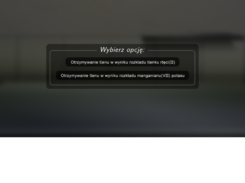 Wykorzystując wirtualne laboratorium, zastanów się, w jaki sposób można otrzymać tlen w warunkach laboratoryjnych. Przeanalizuj przedstawione przykłady rozkładu tlenku rtęci() oraz manganianu() potasu. Rozwiąż problem badawczy, zweryfikuj hipotezę, zapisz obserwacje, wyniki i wnioski.