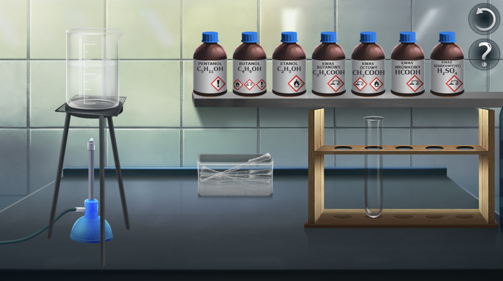 W wirtualnym laboratorium badano powstawanie estrów. Zapoznaj się poniższym opisem doświadczenia, a następnie rozwiąż zamieszczone pod nim ćwiczenia.