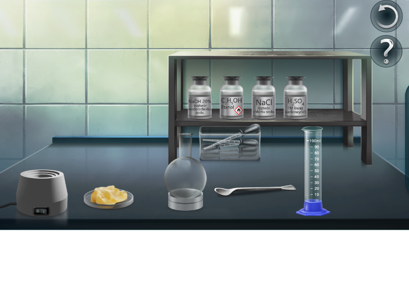 Czy wiesz, jak otrzymać mydło, z którego korzystasz na co dzień? Przeprowadź doświadczenie w laboratorium chemicznym, a następnie zweryfikuj hipotezę, uzupełnij obserwacje, wyniki i wnioski. Spróbuj wykonać doświadczenie samodzielnie. Jeśli jednak będziesz mieć problemy, możesz skorzystać z instrukcji, która znajduje się pod znakiem zapytania w prawym górnym rogu.