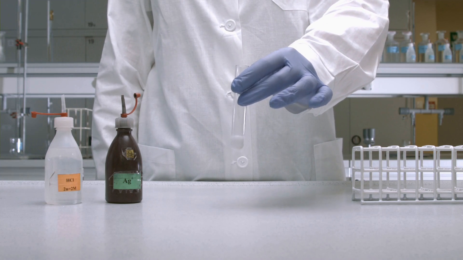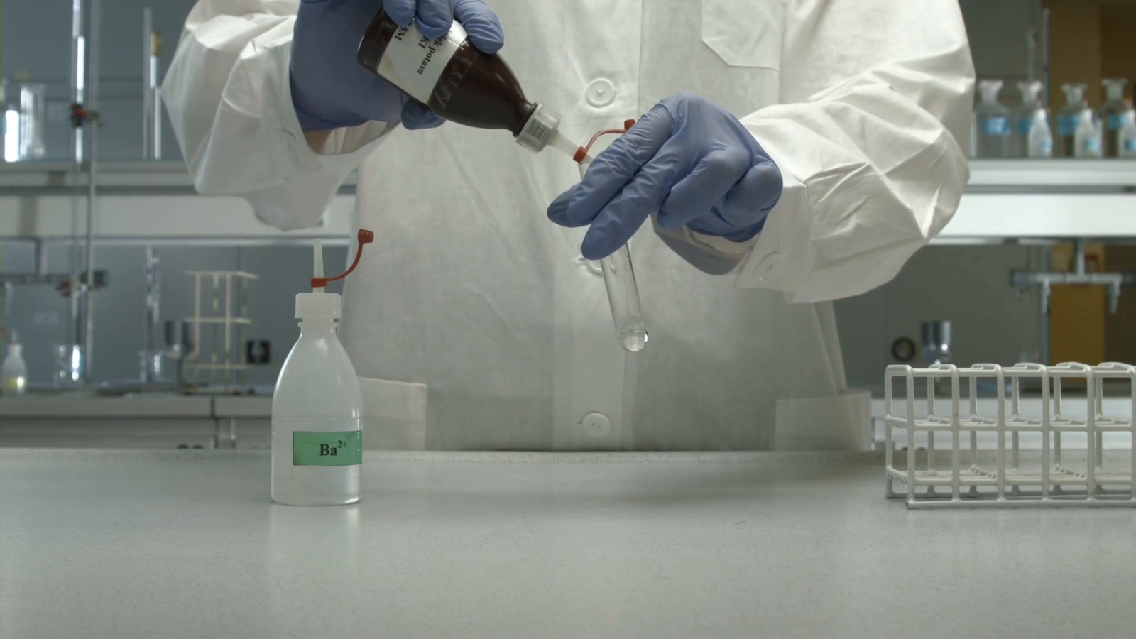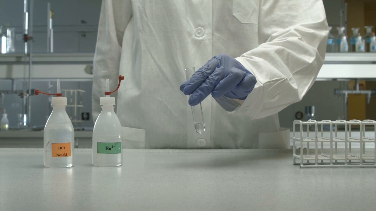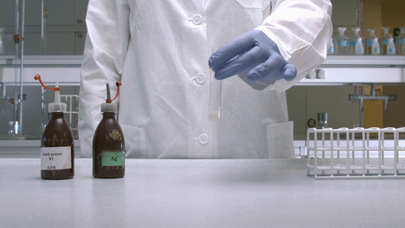 Do probówki umieszczonej w statywie dodano niewielką ilość roztworu, zawierającego kationy srebra lub baru.