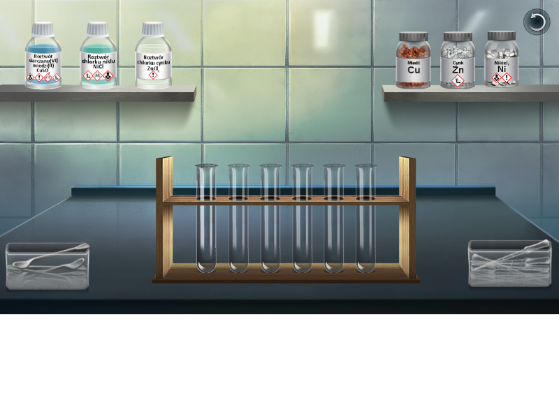 Na podstawie eksperymentu przeprowadzonego w wirtualnym laboratorium określ, który z badanych w nim metali (Zn, Cu czy Ni) charakteryzuje się najsilniejszymi właściwościami redukującymi oraz który z jonów badanych metali (Zn2+, Cu2+Ni2+) charakteryzuje się najsilniejszymi właściwościami utleniającymi.
