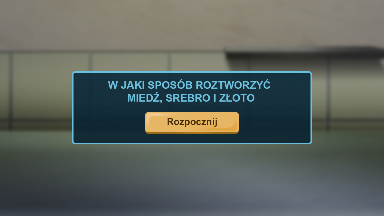 Czy wiesz, w jaki sposób można roztworzyć miedź, srebro oraz złoto? Wiesz, jakich wyników można się spodziewać? W poniższym wirtualnym laboratorium będziesz mógł sprawdzić, jak wykonać taki eksperyment. W dzienniku spróbuj opisać ten eksperyment. Zapisz hipotezę, zanotuj swoje obserwacje i wyniki, a następnie zapisz wnioski.