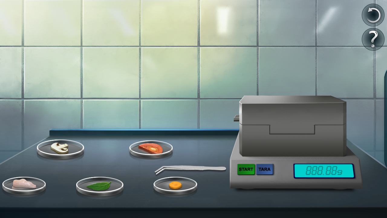 Materiał biologiczny: mała pieczarka (oczekiwana wilgotność: ok. 80%); kilka liści dowolnej rośliny (oczekiwana wilgotność: ok. 75%); połowa marchewki lub pietruszki (oczekiwana wilgotność: ok. 80%); połowa pomidora (oczekiwana wilgotność: ok. 90%); kawałek świeżego mięsa (oczekiwana wilgotność: ok. 70%).
