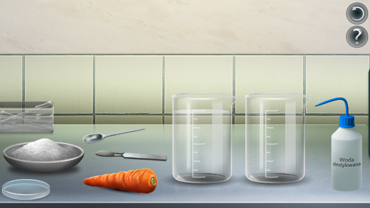 Przełożono marchew do naczynia z wodą. Pozostawiono marchew na 3 godziny. Po tym czasie sprawdzono, jakie zmiany zaszły.
