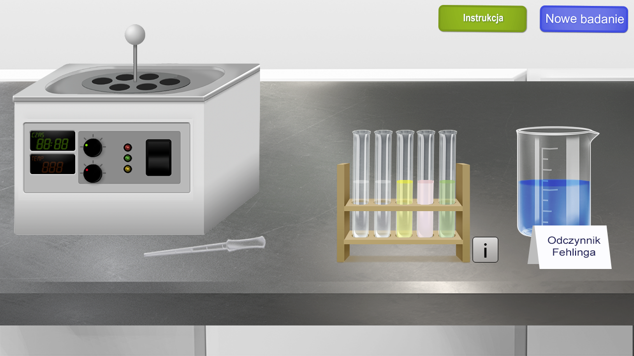 Przeprowadź doświadczenie w laboratorium biologicznym w celu wykrycia cukrów prostych. Rozwiąż problem badawczy i zweryfikuj hipotezę. W formularzu zapisz swoje obserwacje i wyniki, a następnie sformułuj wnioski.