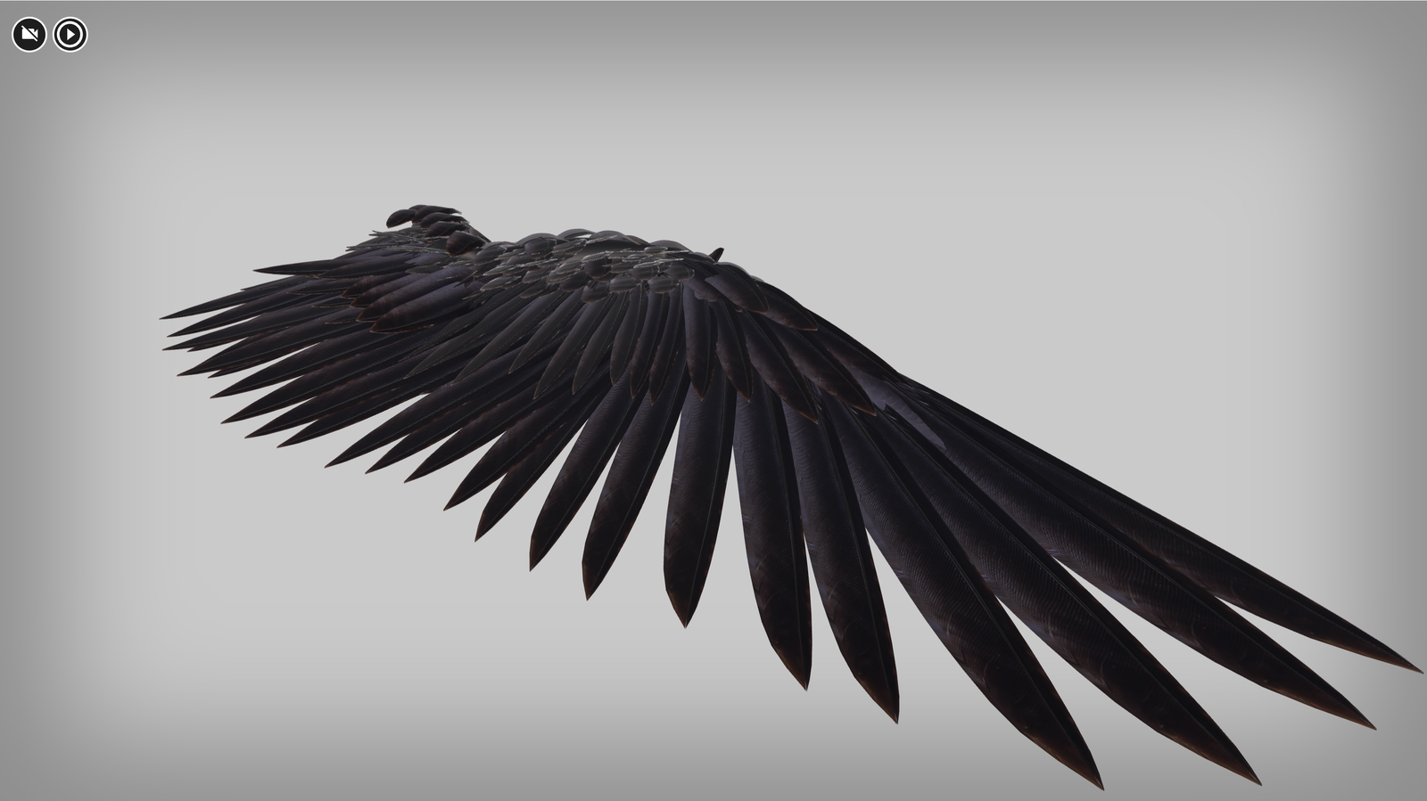 Model 3 D przedstawia skrzydło ptaka. Jest ono lekko zgięte. Ma aerodynamiczny kształt. Jego przednia część jest szersza. Skrzydło zwęża się do tyłu. Jego przekrój poprzeczny miałby kształt wydłużonego migdału. Pióra ptaka układają się na skrzydle zgodnie z kierunkiem lotu i kierunkiem powietrza.