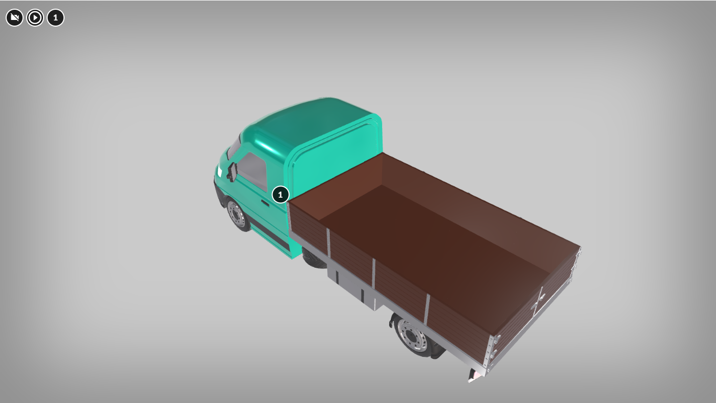 Ciężarówka składa się z dwóch głównych części: z przodu znajduje się kabina dla kierowcy, a z tyłu pojazdu otwarta skrzynia ładunkowa. Skrzynia umocowana jest na ramie i posiada wysokie ścianki oraz podłogę. W modelu skrzynia jest przechylona na jedną z krawędzi bocznych przy podłodze. Ściana przylegająca do tej krawędzi jest swego rodzaju klapą, którą otworzono. Klapa ta otwiera się od dołu.