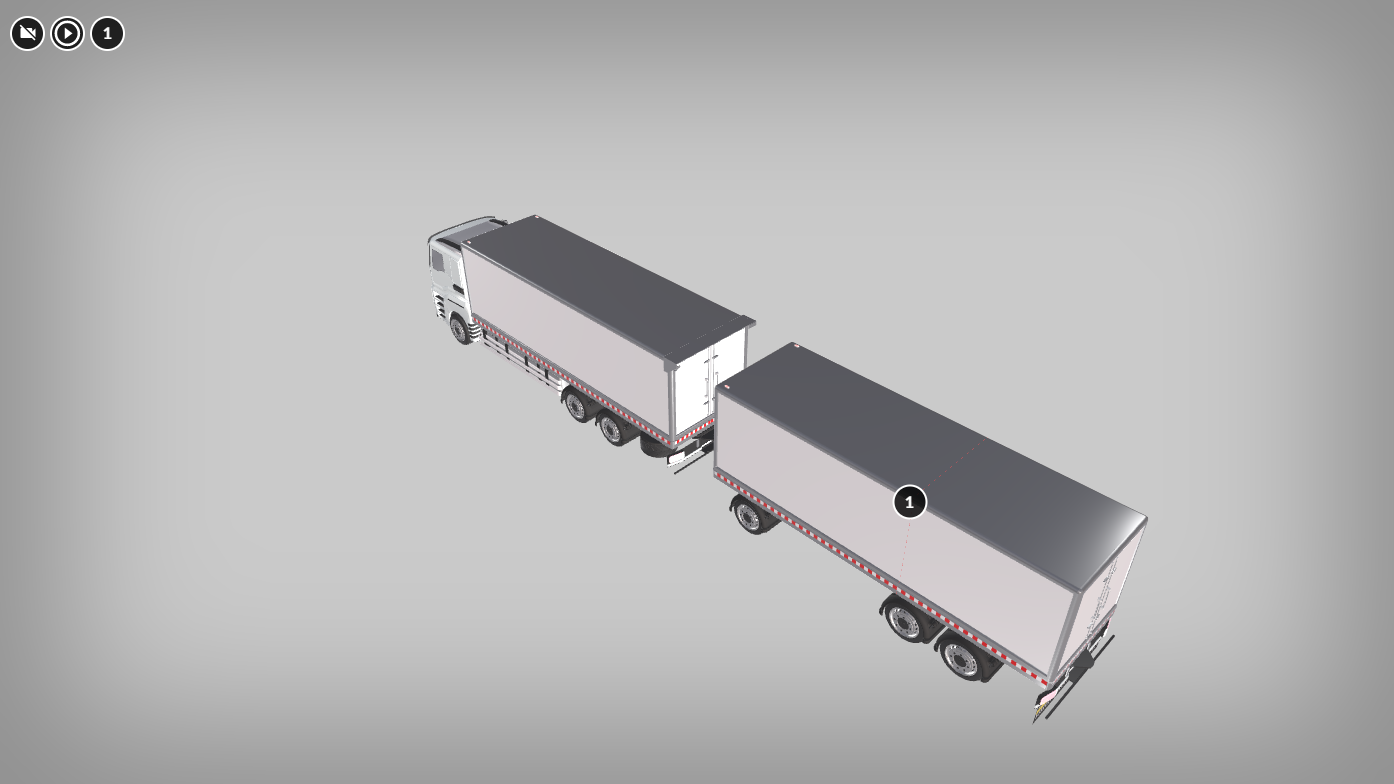 Naczepa kurtynowa przedstawiona jest w przedniej części. Ma ona kształt długiego prostopadłościanu. Przednia ściana ma w dolnej części odblaskową naklejkę w czerwono‑białe ukośne pasy o równej szerokości. Dach naczepy jest metalowy i połyskujący. Jedna ze ścian bocznych składa się z plandeki, którą można odsłonić. Z przodu pod naczepą znajduje się metalowa noga podtrzymująca w postaci niewielkiej belki o kwadratowym przekroju poprzecznym, a pod nogą znajduje się prostokątna metalowa podstawka. Z tyłu znajdują się koła.