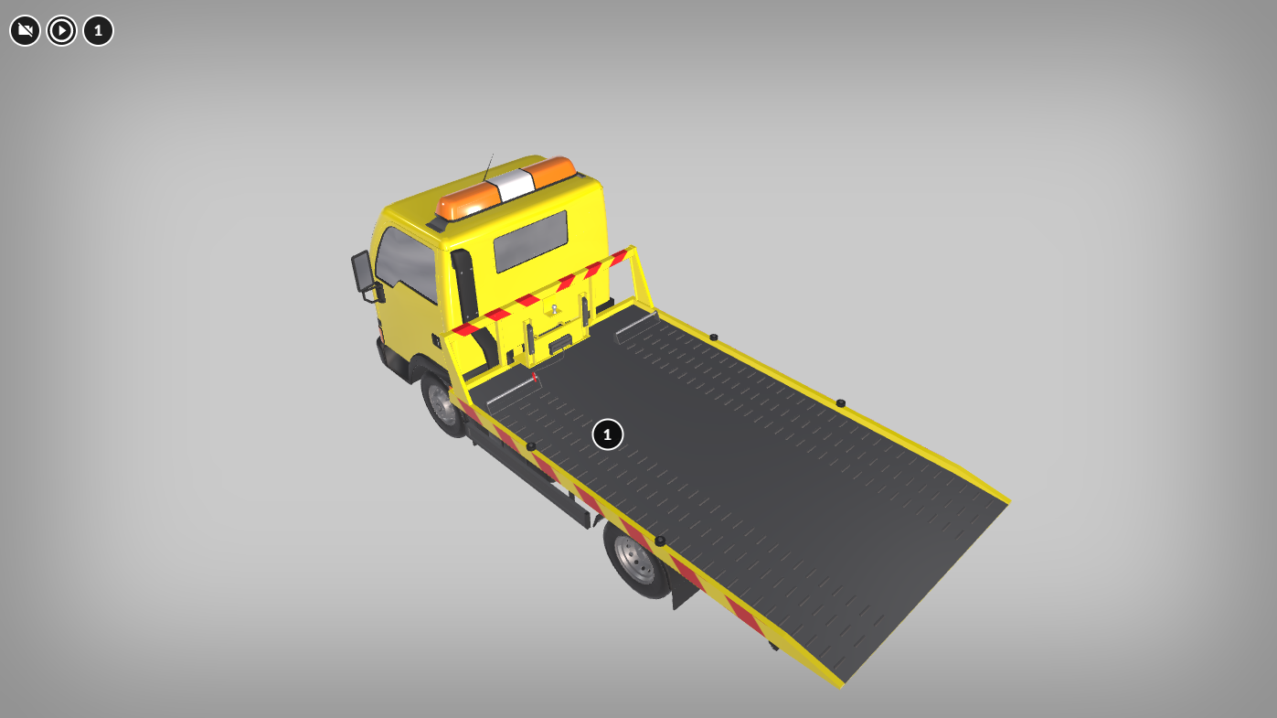 Pomoc drogowa to pojazd składający się z dwóch części – kabiny kierowcy i platformy holowniczej służącej do przewożenia samochodów. Na dachu kabiny zamontowana jest pomarańczowa lampa sygnalizacyjna. Pod kabiną znajduje się jedna para kół, pod platformą holowniczą – druga. Brzeg platformy oklejony jest ostrzegawczą taśmą w ukośne biało‑czerwone pasy o równej szerokości. Z przodu platformy znajdują się pionowe metalowe wsporniki, natomiast jej tył jest wygięty w dół, co jest pomocne przy załadowywaniu na nią samochodów.