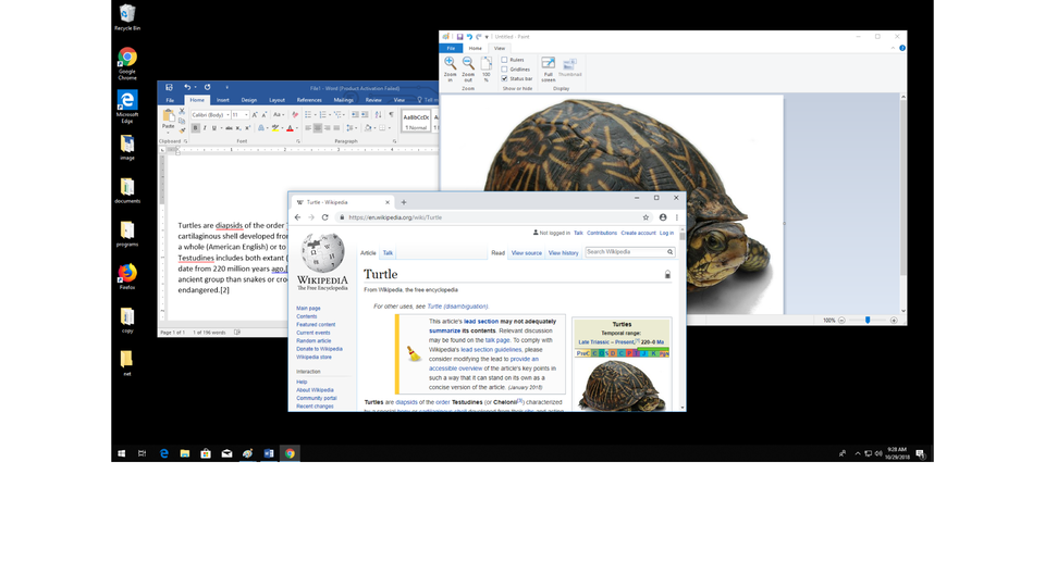 Open the text editor and create a short note about the turtle (text, photos) from the materials found on the Internet. Do not turn off any windowwindowwindow during this operation.