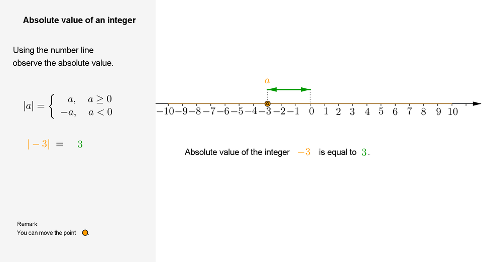 Revise the concept of the absolute valueabsolute valueabsolute value using the applet.
