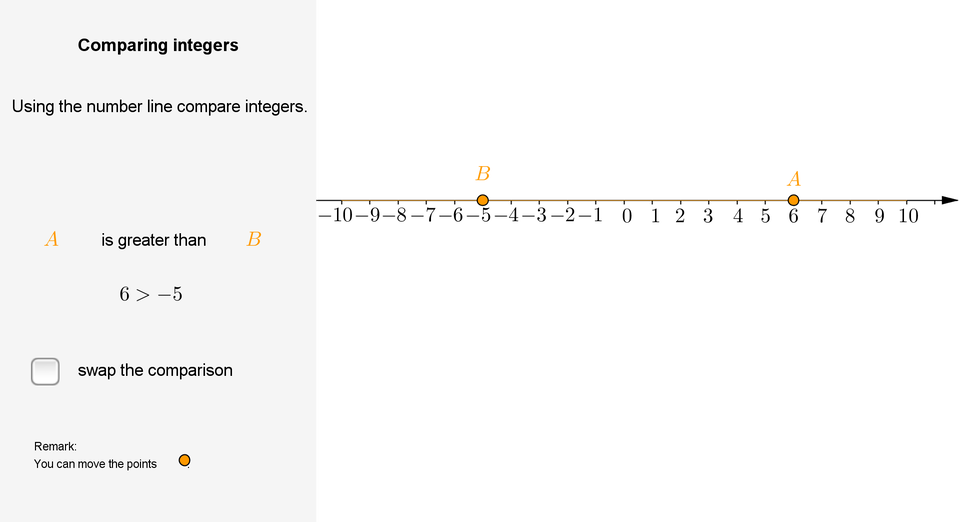 Aplet geogebry: Porównywanie liczb całkowitych. Poniżej znajduje się galeria ilustracji stanowiących alternatywę dla apletu.