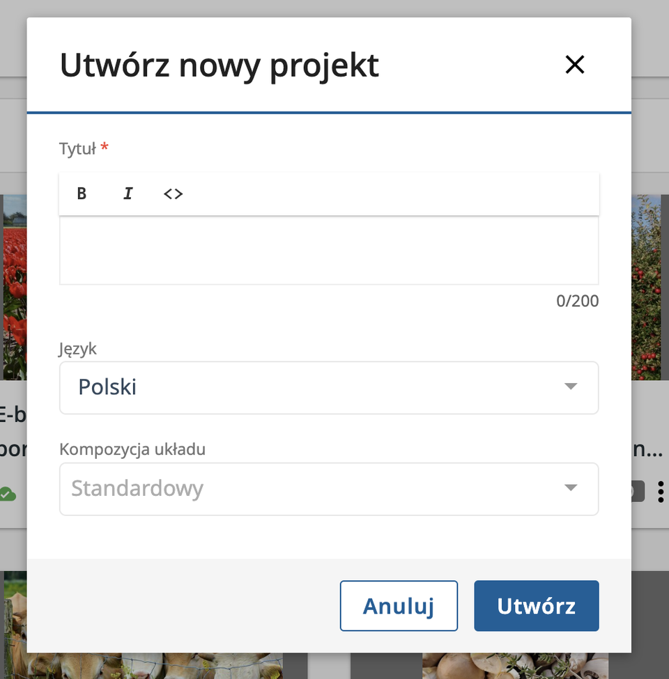 W wyświetlonym oknie wprowadzamy tytuł i ustawiamy język (domyślnie jest to polski).