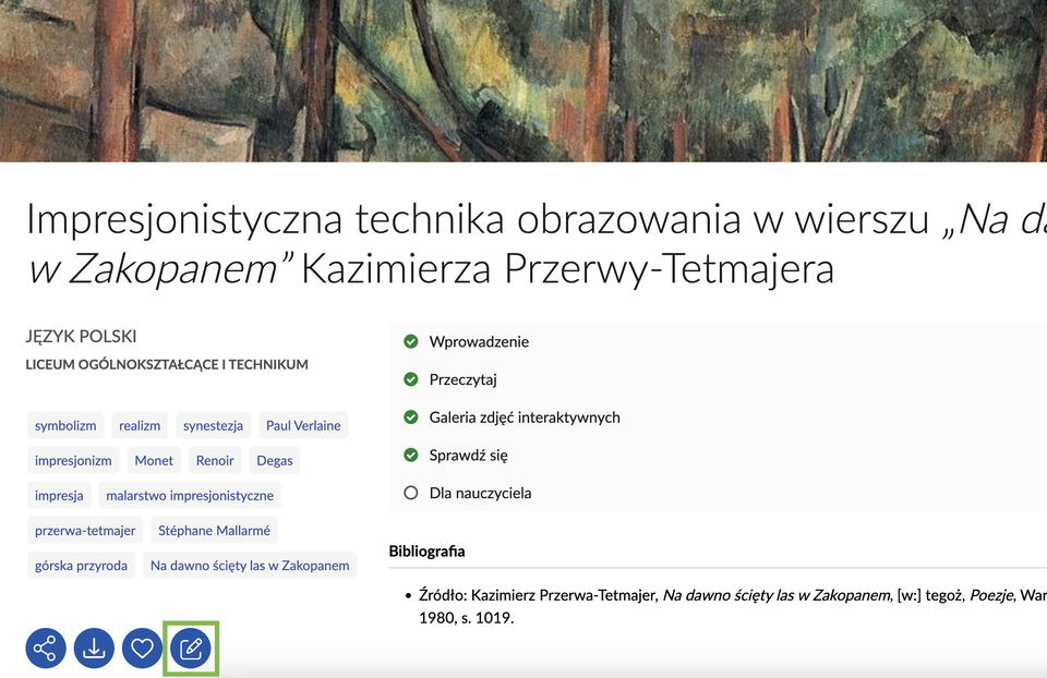 Wyszukaj materiał w portalu i otwórz jego stronę tytułową.
