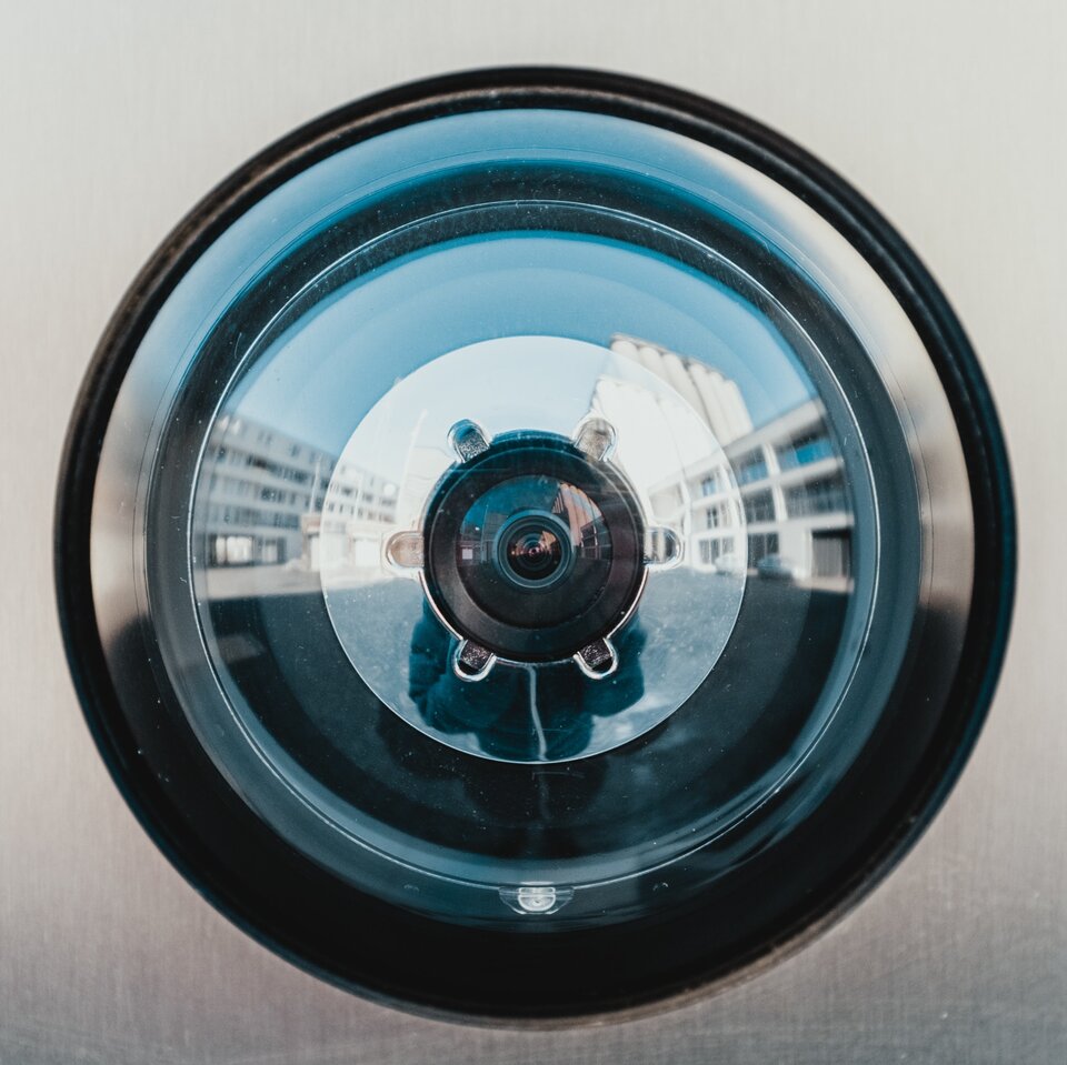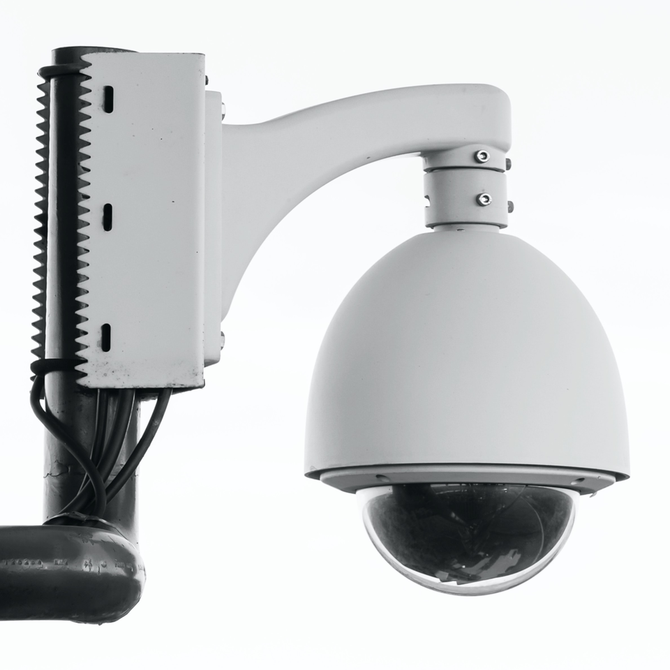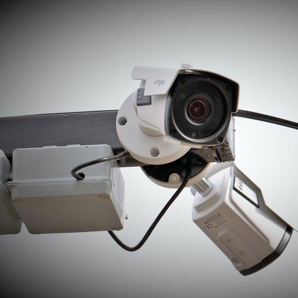 Na zdjęciu widoczny jest mężczyzna wpatrujący się w ekrany monitoringu.