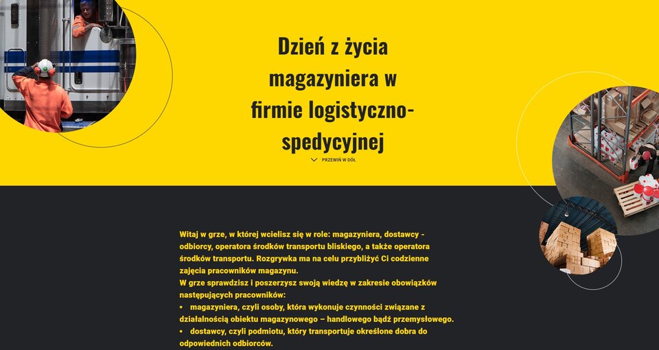 Gra edukacyjna dzień z życia magazyniera w firmie logistyczno-spedycyjnejGra edukacyjna