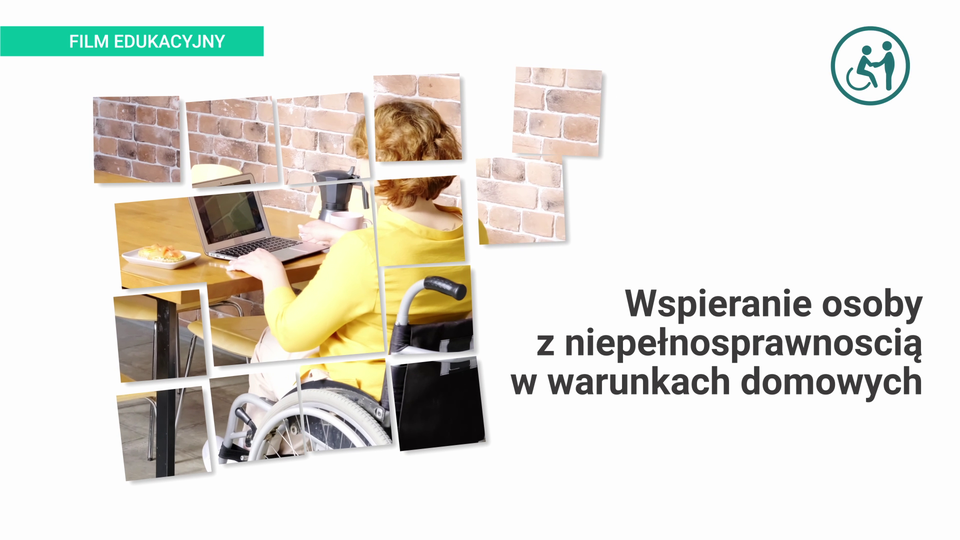 Film przedstawiający wspieranie osoby z niepełnosprawnością w warunkach domowych.