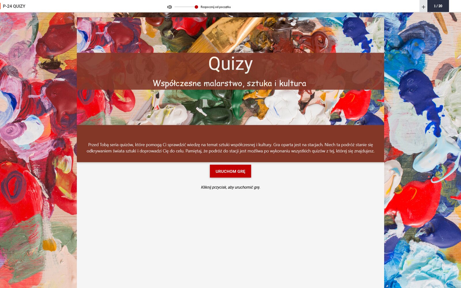 Materiał można określić sztuką w pigułce i potraktować jako usystematyzowanie wiedzy na temat sztuki awangardowej II połowy XX wieku. Na jego podstawie dowiesz się o głównych dziedzinach w sztuce. Na wybranych przykładach dowiesz się także, jak współcześni artyści realizowali w swoich dziełach założenia najważniejszych kierunków i tendencji w sztuce. Zapoznasz się również z technikami, którymi się posługiwali. Informacje te, dokładne zapoznanie się z przykładami oraz własne spostrzeżenia i wnioski pozwolą Ci wykonać zadania oraz quizy, które znajdują się w zamieszczonej grze.