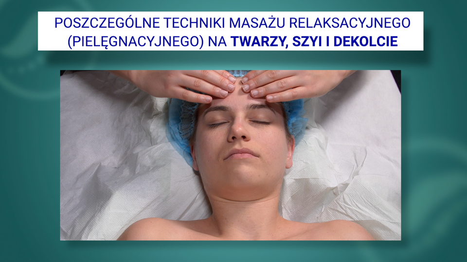 Film przedstawiający poszczególne techniki masażu relaksacyjnego (pielęgnacyjnego) na twarzy, szyi i dekolcie.