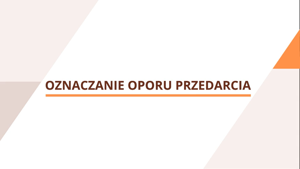 Sekwencja filmowa pod tytułem "Oznaczanie oporu przedarcia". W materiale filmowym opisano zagadnienia związane z oznaczaniem oporu przedarcia oraz przedstawiono urządzenie, które bada niniejszy parametr.