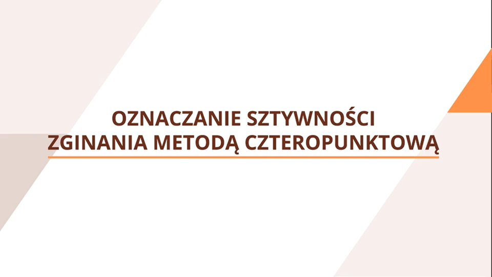 Sekwencja filmowa pod tytułem "Oznaczanie sztywności zginania metodą czteropunktową". W materiale filmowym opisano zagadnienia związane ze sztywnością zginania materiału papierniczego oraz przedstawiono urządzenie, które bada niniejszy parametr.