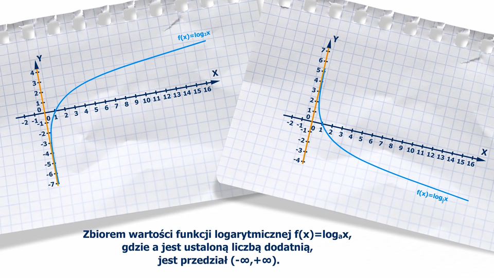 Zapoznaj się z poniższym filmem, który pokazuje jak wyglądają wykresy pewnych dwóch funkcji logarytmicznych. Zwróć szczególną uwagę na monotoniczność obu funkcji. Odczytaj z wykresów zbiór wartości tych funkcji.