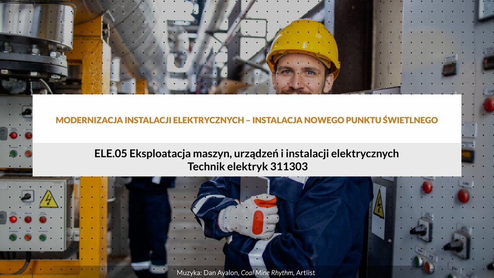 Film edukacyjny. Modernizacja instalacji elektrycznych - instalacja nowego punktu świetlnego. ELE.05 Eksploatacja maszyn, urządzeń i instalacji elektrycznych, Technik elektryk 311303.
