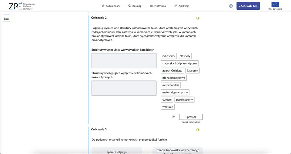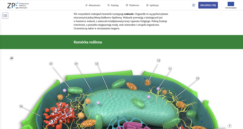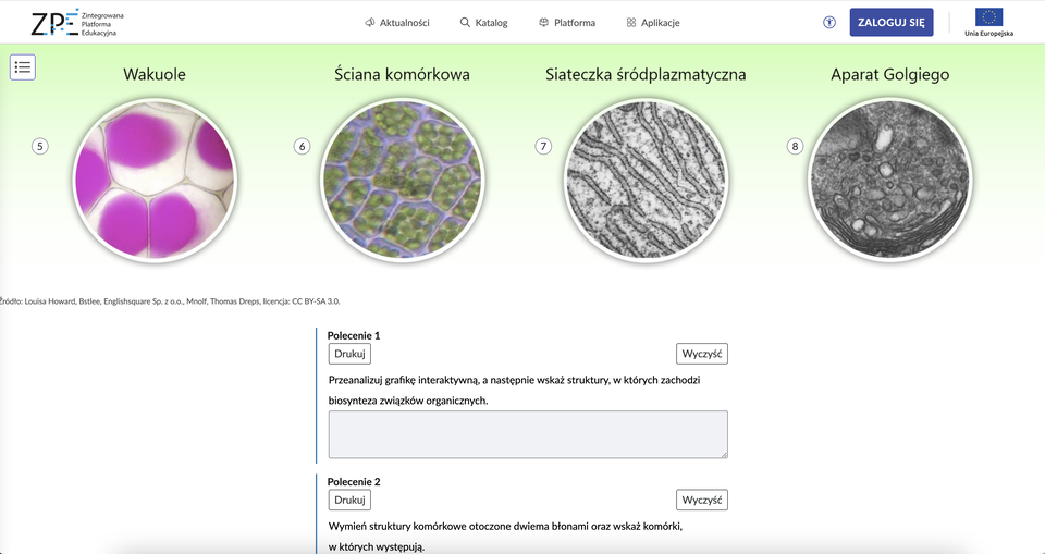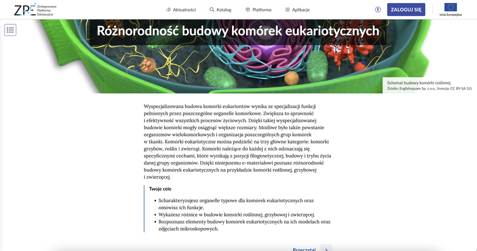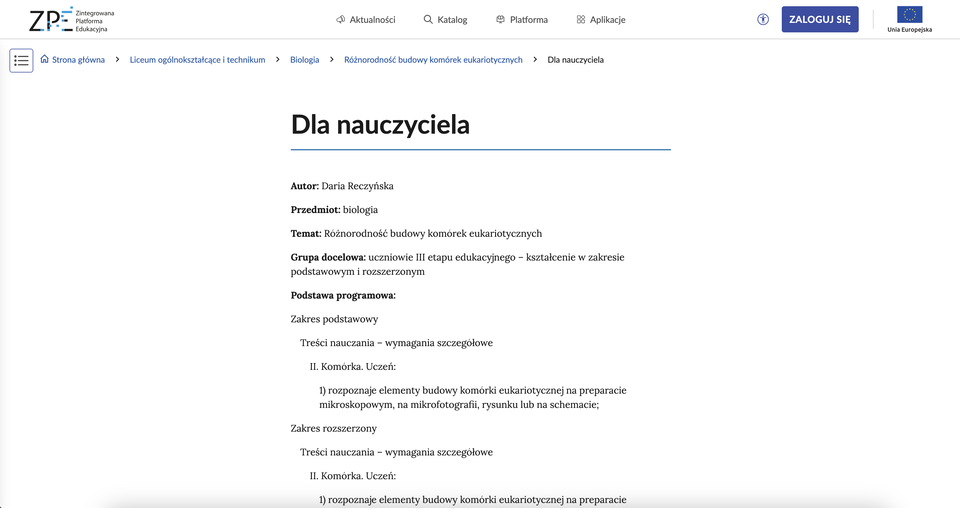 Wyszukiwanie materiałów z biologii na poziomie liceum ogólnokształcącego nt. komórki.