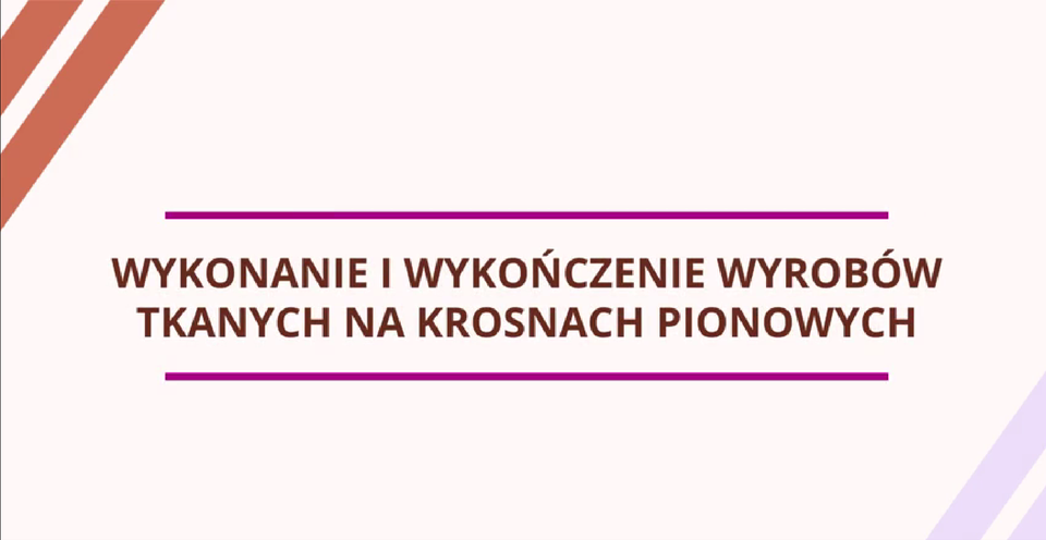 3. Wykonanie i wykończenie wyrobów tkanych na krosnach poziomychWykonanie i wykończenie wyrobów tkanych na krosnach poziomych