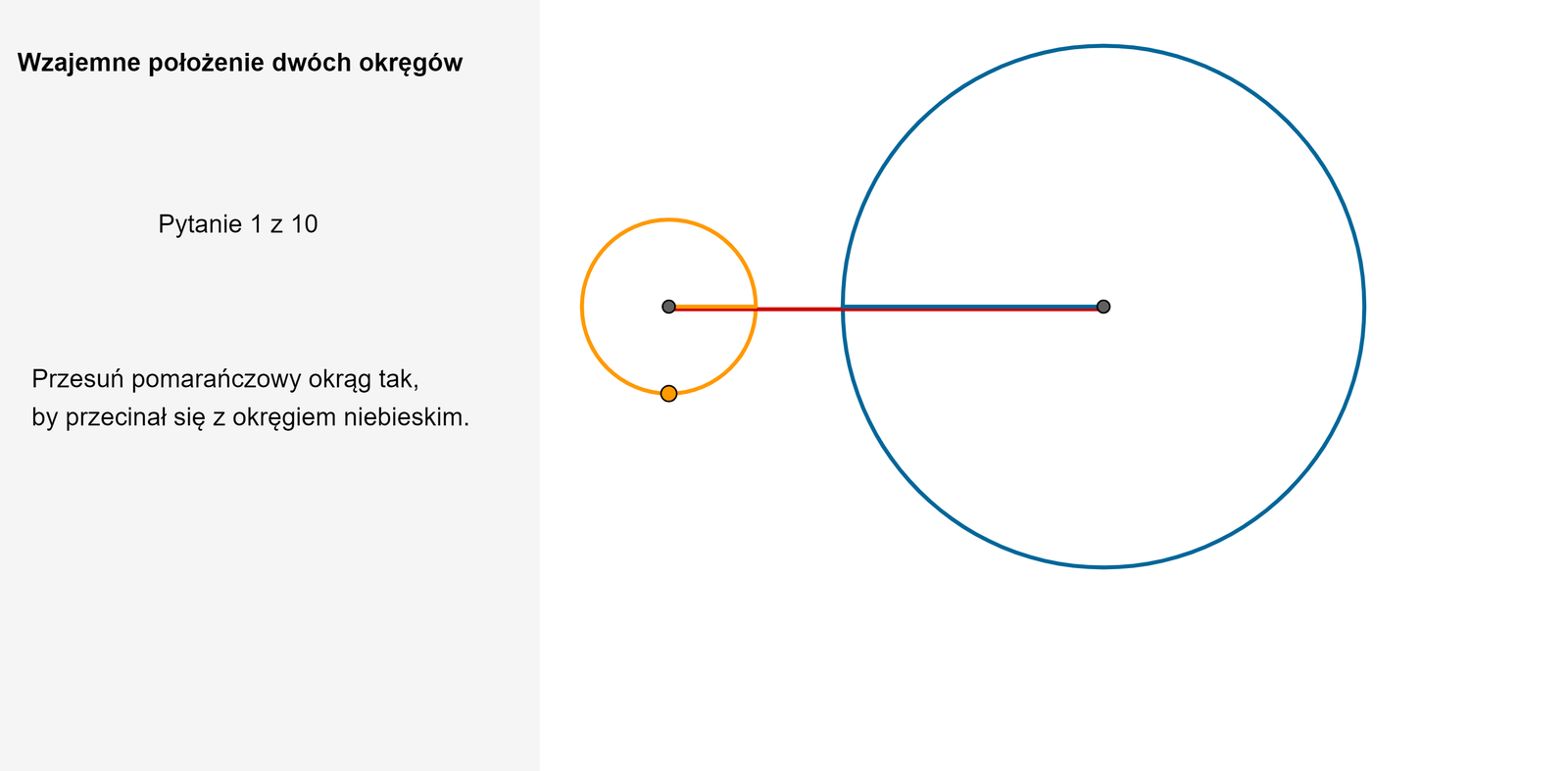 Okręgi styczne zewnętrznie | jeden | Źródło: Zespół autorski Politechniki Łódzkiej, licencja: CC BY 3.0. | ||