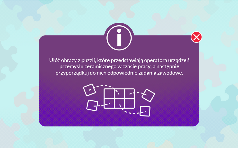 Po zapoznaniu się z rozdziałem „Zadania zawodowe” zapraszamy do gry, która pozwoli Ci na utrwalenie swojej wiedzy dotyczącej zawodu operator urządzeń przemysłu ceramicznego.