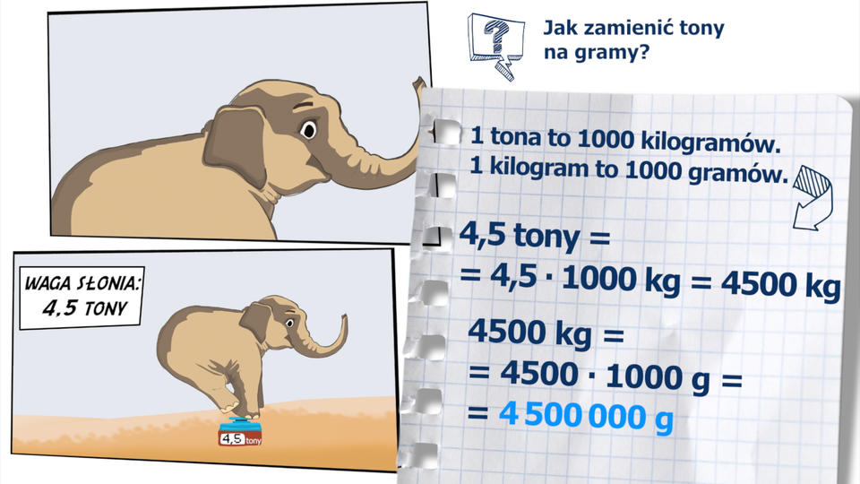 Animacja przedstawia w jaki sposób możemy zamienić tony na gramy.