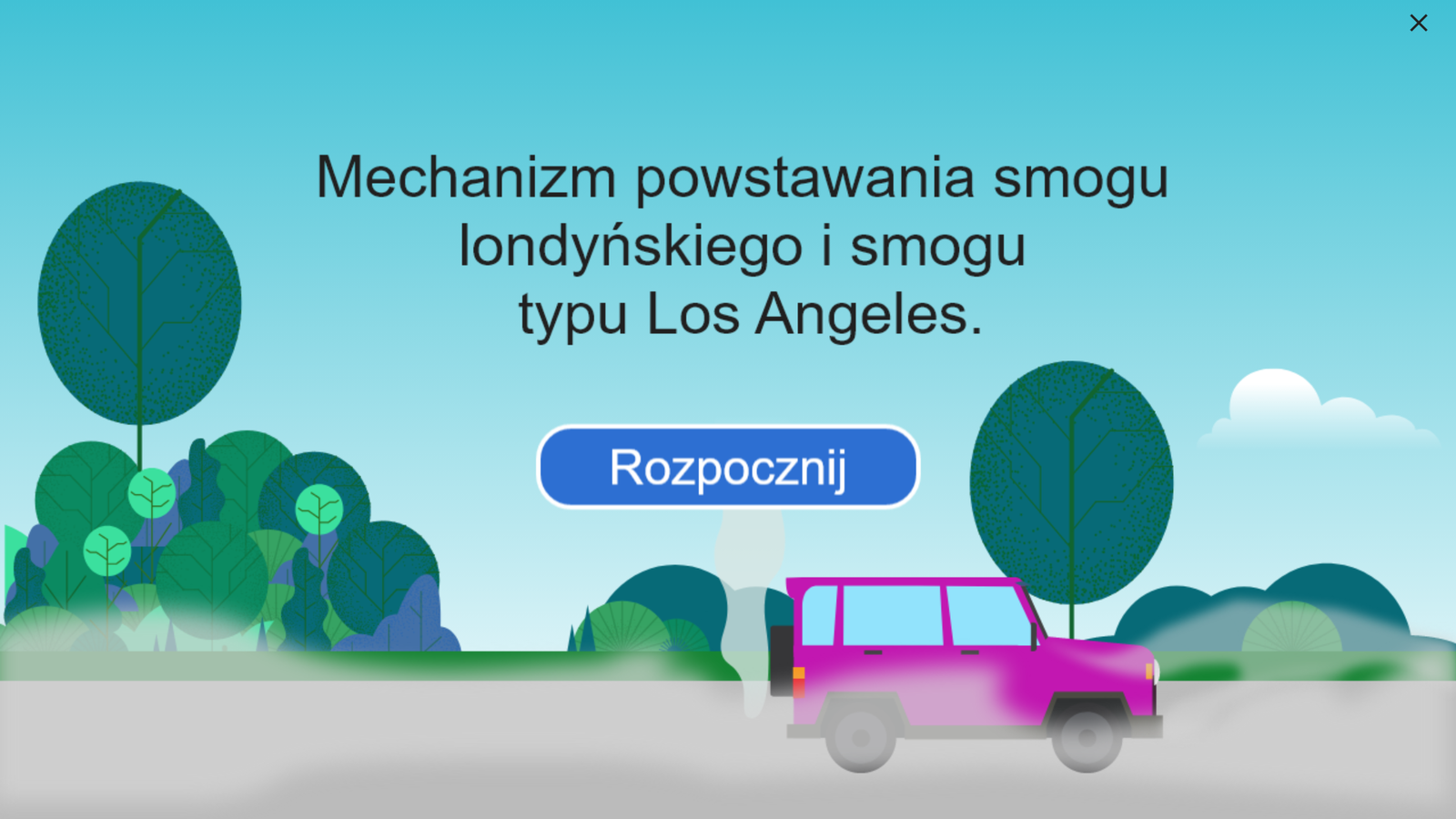 Wykorzystując poniższe symulacje, sprawdź, kiedy i w jaki sposób powstają wspomniane rodzaje smogu. Następnie wykonaj polecenia od do .
