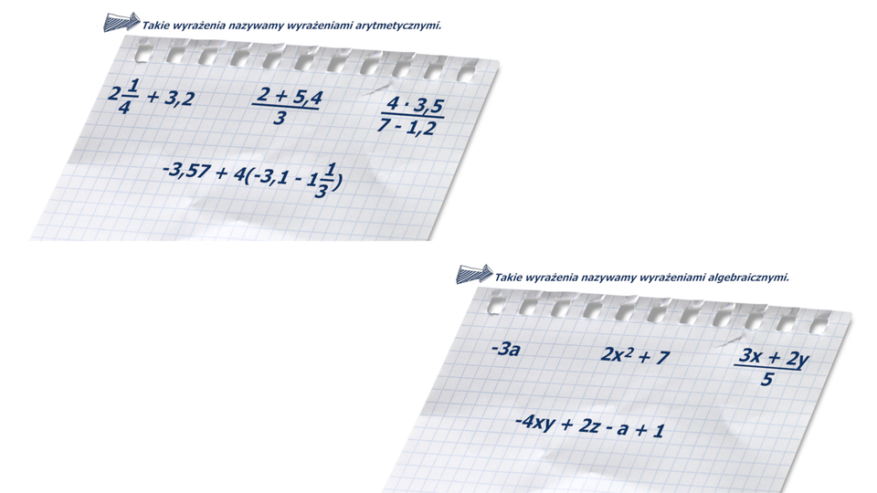 Wyrażenia algebraiczne można utworzyć z liczb, liter oraz znaków działań matematycznych i nawiasów. Litery występujące w wyrażeniu algebraicznym nazywamy zmiennymi.