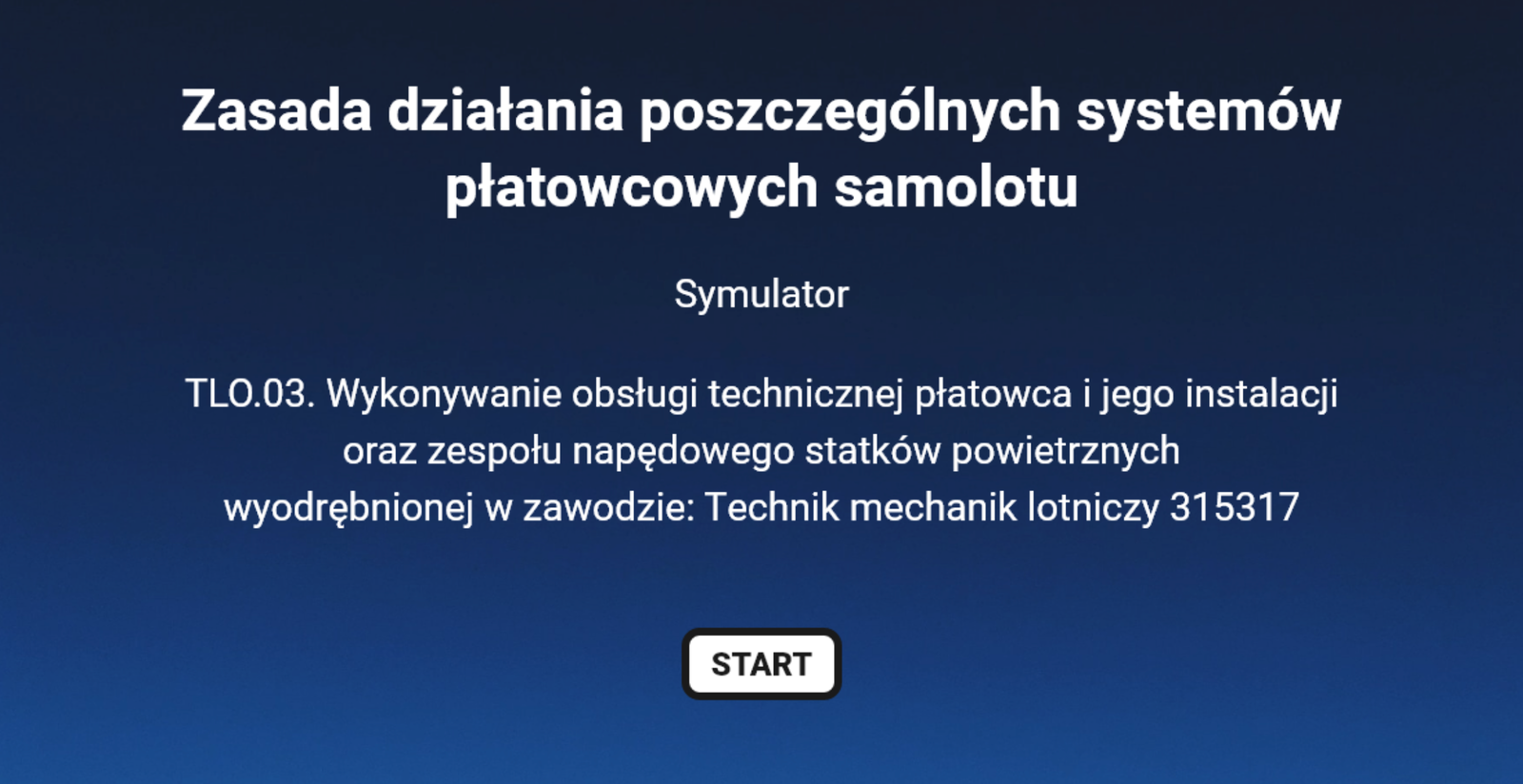 Po kliknięciu przycisku „START”, przejdziesz do drugiej planszy. Dowiesz się z niej o tym, co będziesz robić w symulatorze.