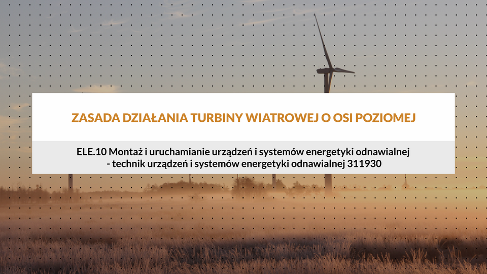 Film pt. "Zasada działania turbiny wiatrowej o osi poziomej. E L E 10 Montaż i uruchamianie urządzeń i systemów energetyki odnawialnej – technik urządzeń i systemów energetyki odnawialnej 3 1 1 9 3 0."