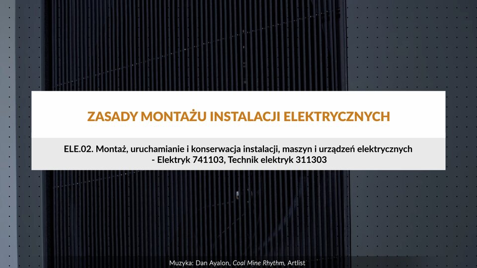 Zasady montażu instalacji elektrycznych. E el e kropka zero dwa kropka. Montaż, uruchamianie i konserwacja instalacji, maszyn i urządzeń elektrycznych myślnik elektryk siedem cztery jeden jeden zero trzy, technik elektryk trzy jeden jeden trzy zero trzy.