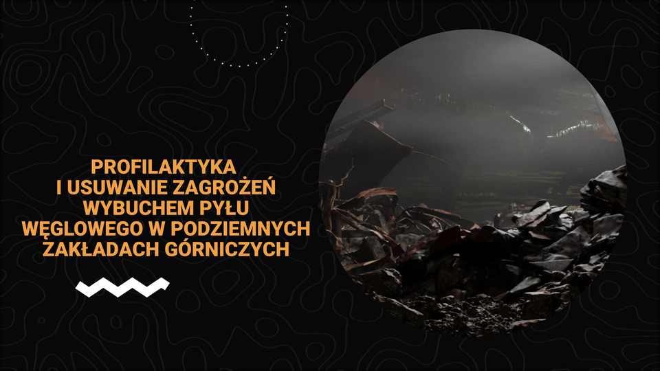 Film nawiązujący do treści materiału dotyczącej zasad postępowania podczas zagrożenia wybuchem pyłu węglowego w podziemnym zakładzie górniczym.