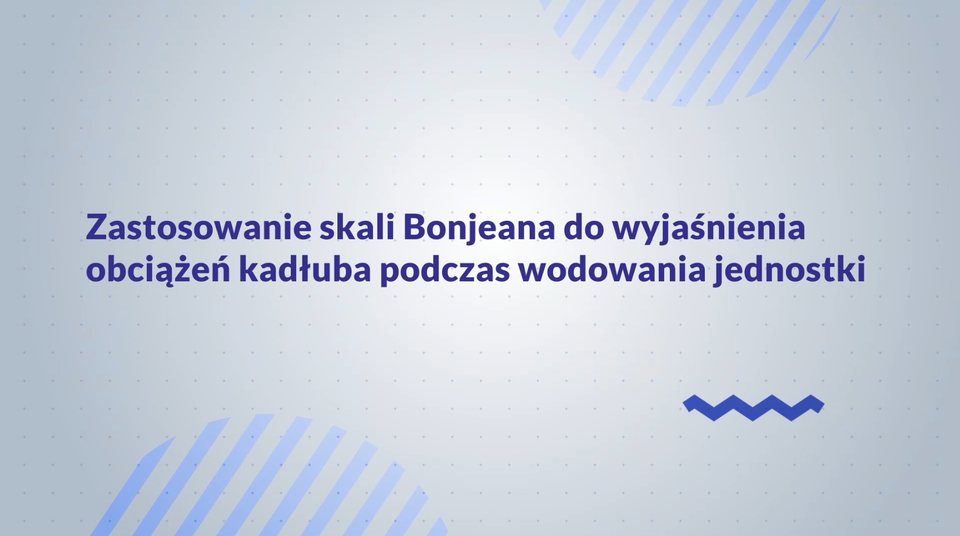Animacja pod tytułem „Zastosowanie skali Bonjeana do wyjaśnienia obciążeń kadłuba podczas wodowania jednostki”.