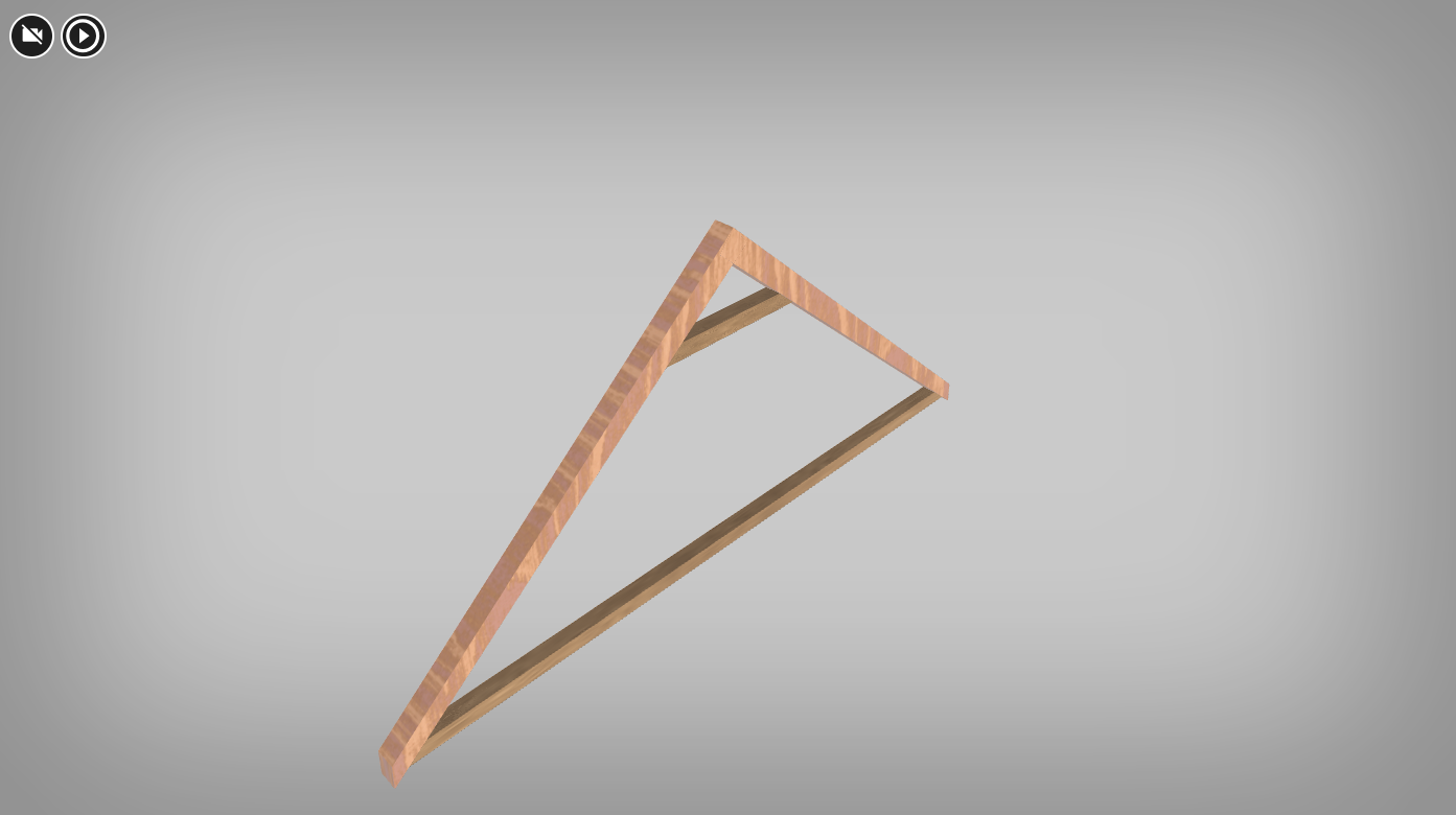 Wizualizacja trzy de przedstawia przykład zastosowania połączeń na zastrzały. Widoczny jest trójkątny element więźby dachowej. Krokwie od dołu połączone są belką stropową, zaś w górnej części ich połączenie wzmocnione jest poziomą belką.
