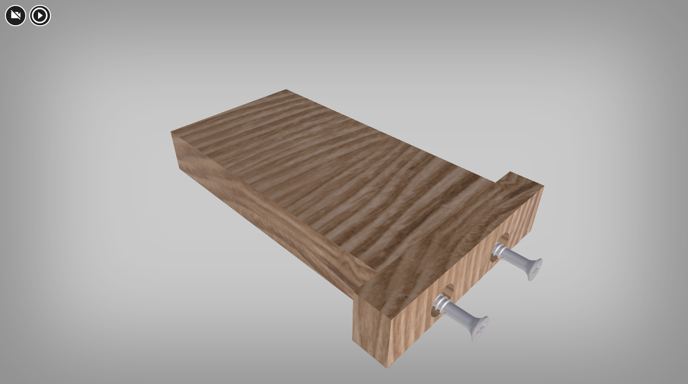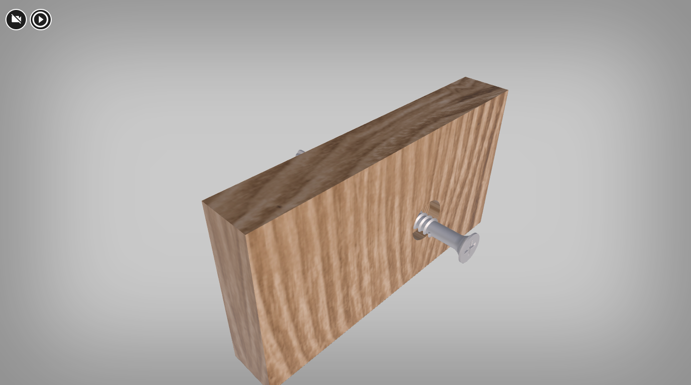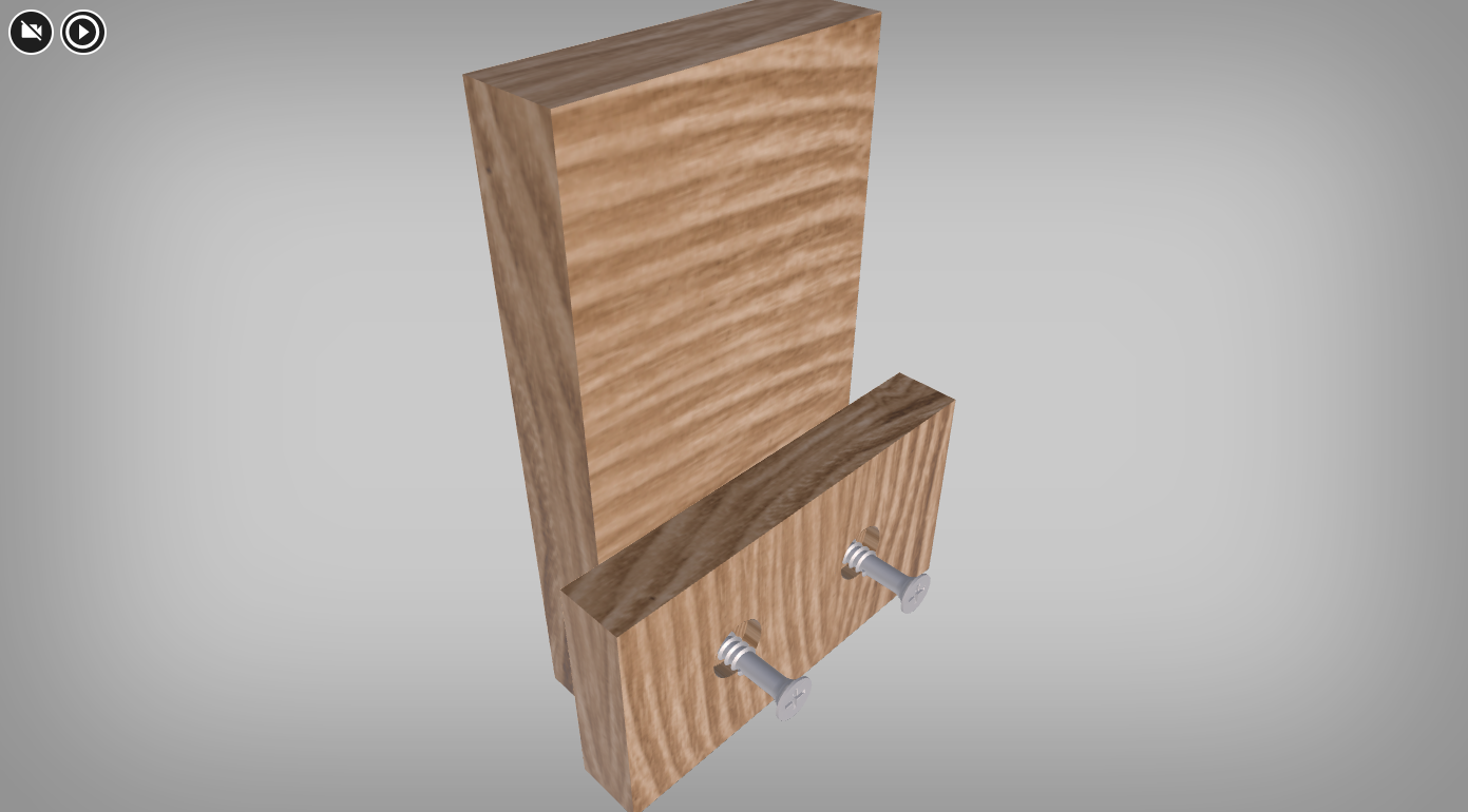Pierwsza wizualizacja trzy de ukazuje gotowe złącze wykonane za pomocą dwóch śrub. Złącze to zwiększa długość elementu. Do czoła drewnianej części o prostokątnym kształcie został przykręcony mniejszy element. Druga wizualizacja trzy de przedstawia inne złącze wykonane za pomocą śrub. Mniejszy element został przykręcony do powierzchni płaszczyzny większego elementu. Złącze to zwiększa grubość.