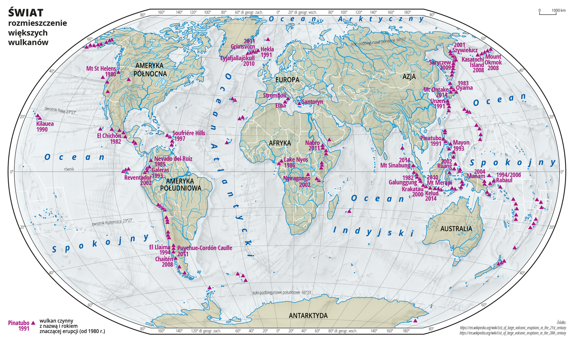 W poleceniu 8. nie został zaznaczony jeden z wulkanów, który występuje na grafice interaktywnej. Wypisz jego nazwę i napisz datę ostatniej erupcji.