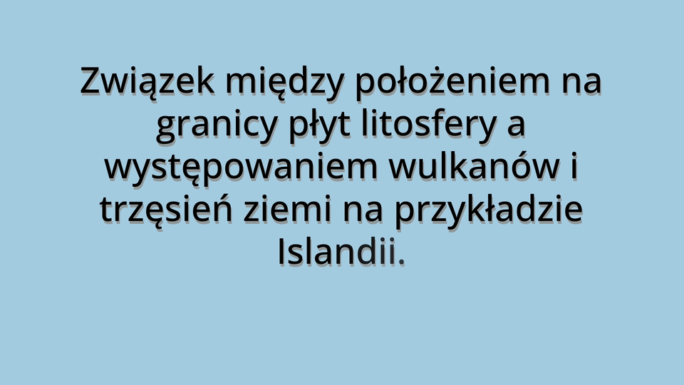 Związek między położeniem na granicy płyt litosfery a występowaniem wulkanów i trzęsień ziemi na przykładzie Islandii (uzupełnienie)