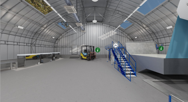 Wycieczka wirtualna pozwala na zwiedzanie zakładu celulozowo‑papierniczego. Składa się ona z ośmiu następujących po sobie ujęć zakładu. W niektórych miejscach znajdują się znaczniki z literą i, pozwalające na odczytanie opisu, oraz znaczniki z sylwetką człowieka, pozwalające na odsłuchanie opisu. W górnym prawym rogu widoczne jest menu. Po kliknięciu na nie wyświetla się pięć funkcji. Pierwsza z symbolem głośnika to włączanie lub wyłączanie dźwięku, druga z symbolem znacznika umieszczanego na mapach pozwala na wyświetlenie panoram, czyli ośmiu ujęć. Trzecia z symbolem strzałki skierowanej w dół na poziomą linię oznacza możliwość pobrania. Czwarta z symbolem gogli pozwala na odtworzenie wycieczki w funkcji wi ar, funkcja dostępna na smartfonie. Piąta z symbolem prostokąta i znajdujących się wewnątrz niego strzałek wskazujących na rogi pozwala na wyświetlenie wycieczki na pełnym ekranie. W dolnym prawym rogu widoczne są kolejne dwie funkcje. Pierwsza symbolizowana przez okrągłą strzałkę umożliwia włączenie i wyłączenie hotspotów. Druga symbolizowana przez kwadrat, przy którego rogach widać linie tworzące kąt prosty, pozwala na wykonanie zrzutu ekranu.